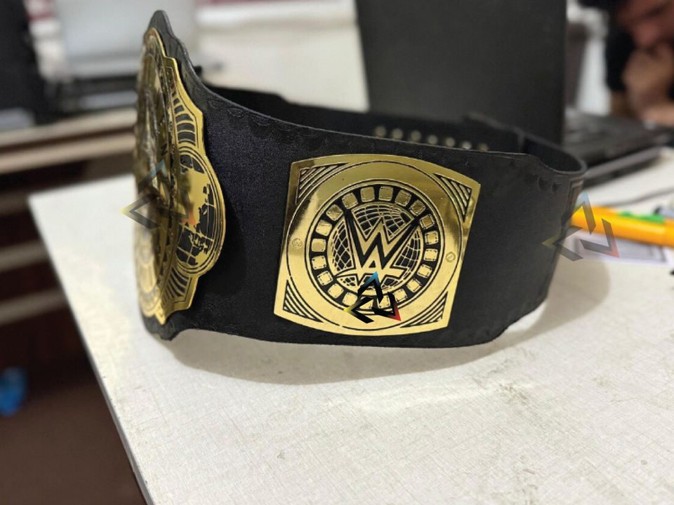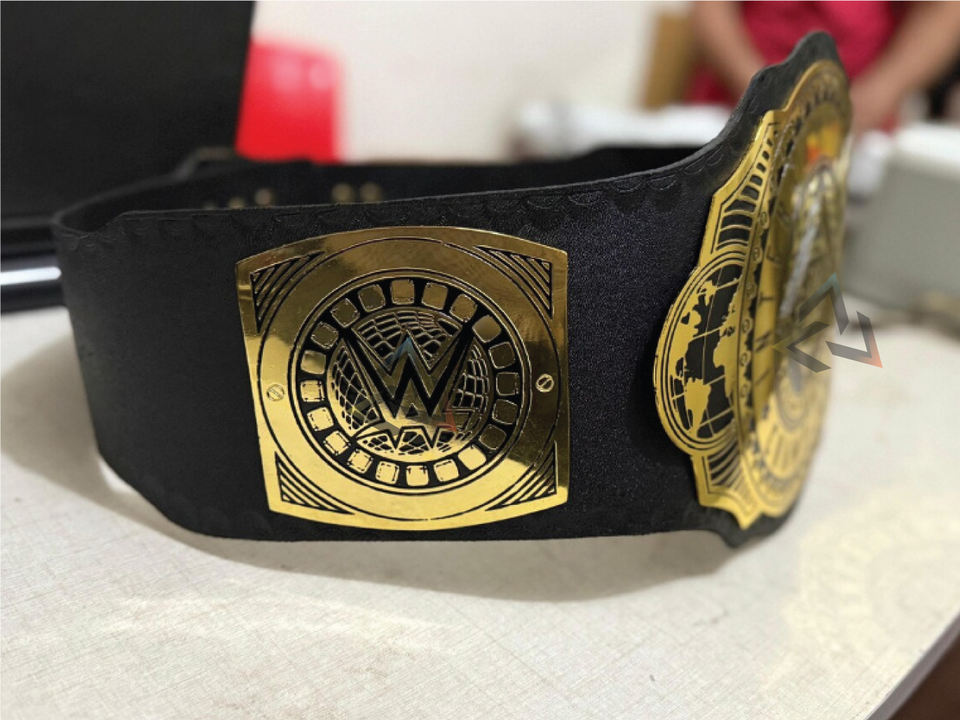Custom W-W-E INTERCONTINENTAL World Championship Title Fan Belt Brass 2mm Adult Size - Gold Plated Metal Plates & Leather Strap