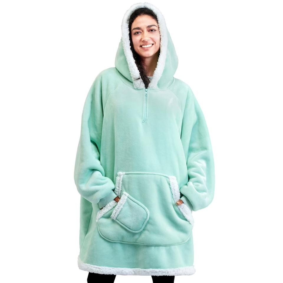 Custom Warm Cozy Oversize Plush Sherpa Blanket Big Hooded Sweatshirt Above Knee Women Christmas Blankets Hoodie