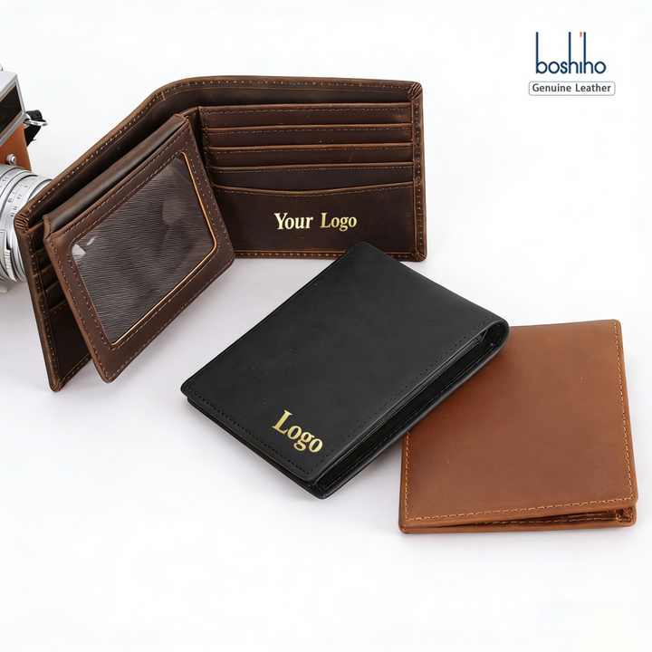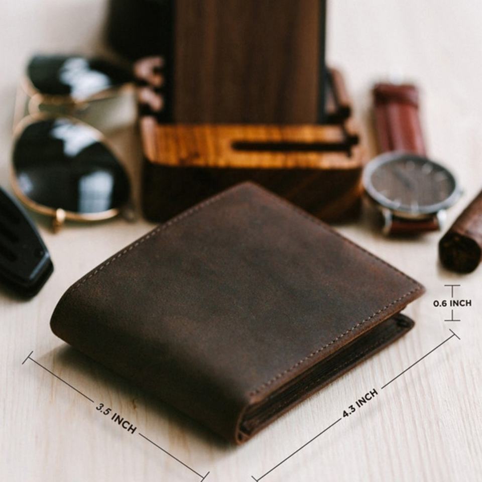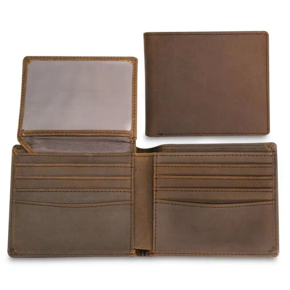 Custom Waterproof Engraved Wallet RFID Blocking Minimalist Bifold Full Grain Genuine Leather Mens Wallet