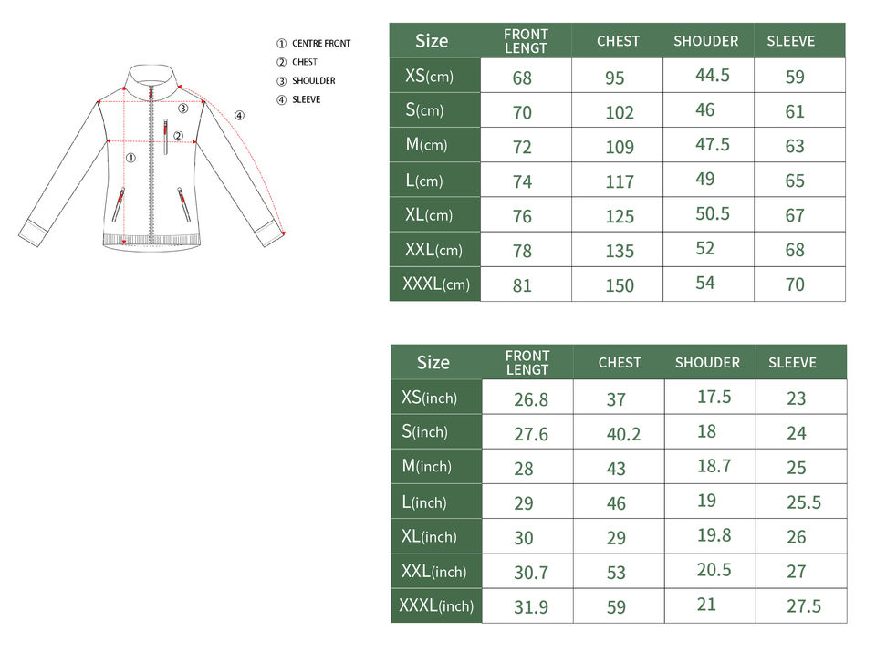 Logo position:Front, back, Left Sleeve, Right Sleeve