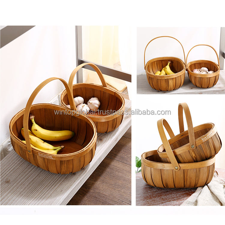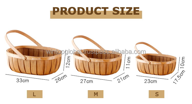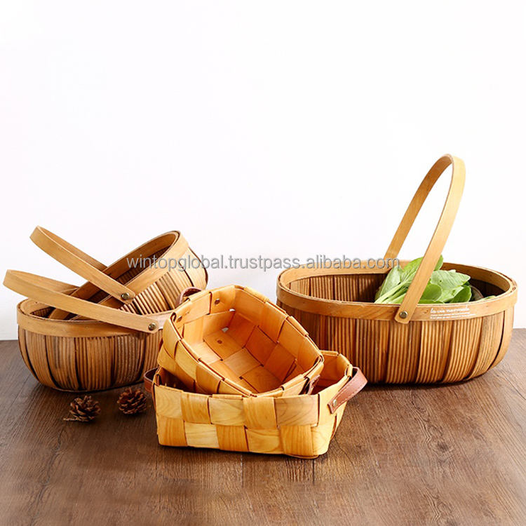 Custom Wedding Woven 100% Handmade Wooden Chips Home Storage Gift Flower Baskets Picnic Basket with Handle