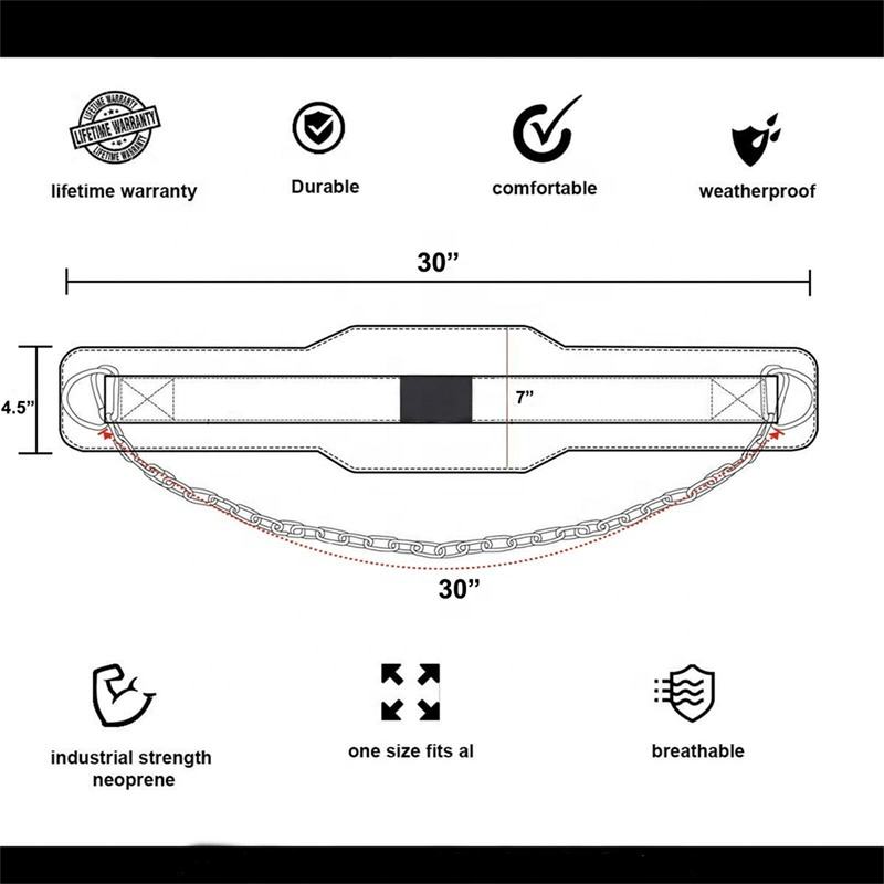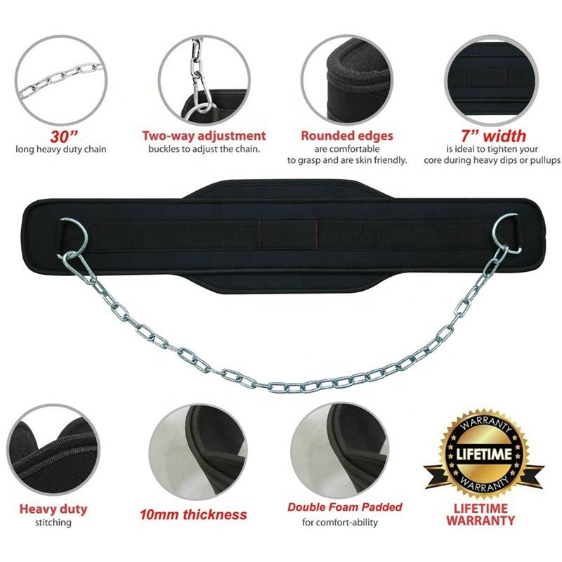 Custom Weight Lifting Nylon Gym Belt Wholesale Neoprene Gym Belt with 32" Inch Steel Chain Black Weightlifting Neoprene Dip Belt