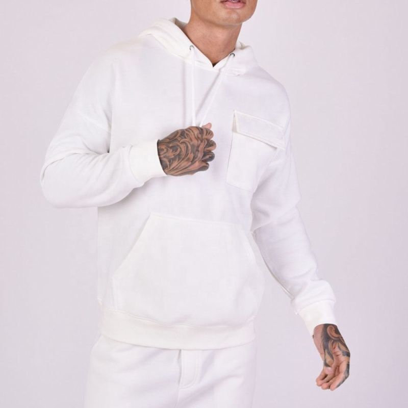 Custom White 100% Cotton Fleece Pullover Tracksuit For Men Acid Washing DTG Print Hoodie Set