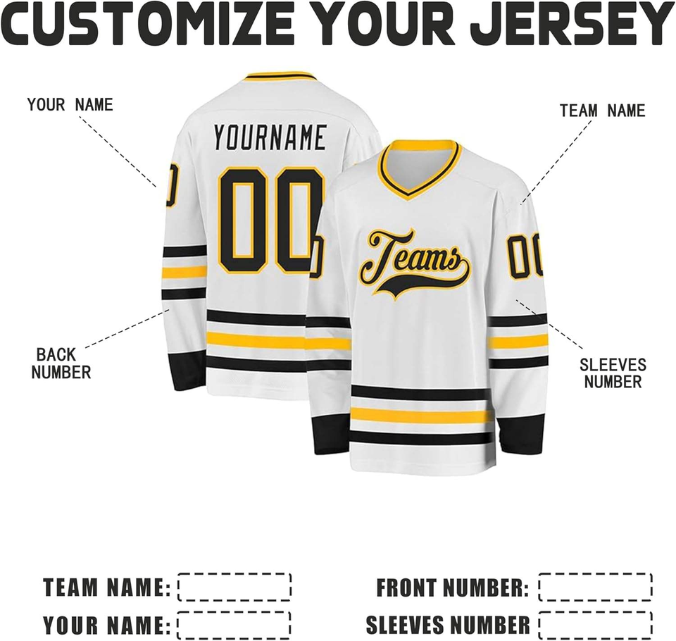 Custom White Black Yellow Ice Hockey Jersey Team Uniform With Name Number Long Sleeve Sports Shirt