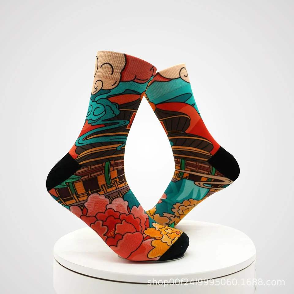Custom White Crew Polyester Crew Socks for Sublimation Digital Cartoon Print Bottom Logo Position