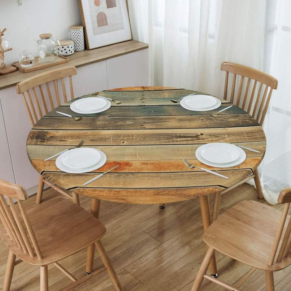 Custom White Gold Marble Waterproof Table Cover Elastic Fitted Table Cloth for 40-50 Inch Picnic Party Kitchen Bar for Hotels