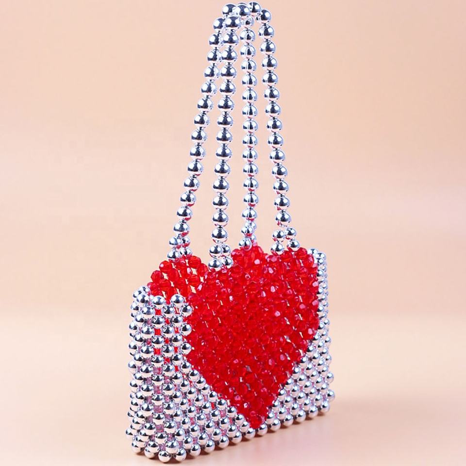 Custom White Heart Beaded Acrylic Resin Open Eco Friendly Handmade Women's Luxury Dinner Tote Bag
