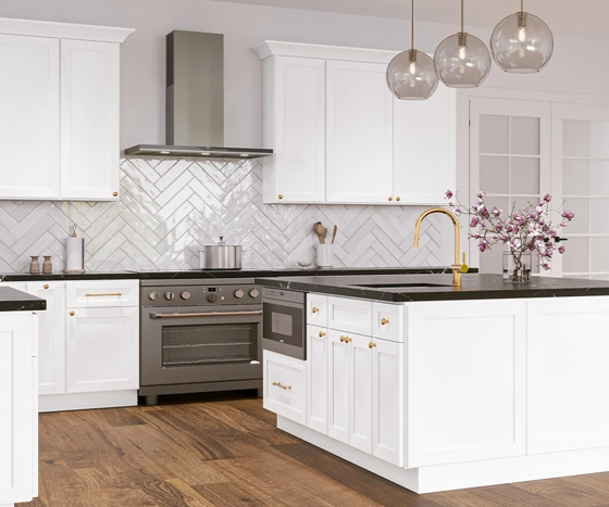 Custom White Modular Modern Wood Kitchen Cabinets Island Design for Apartment and Mall Use with Accessories