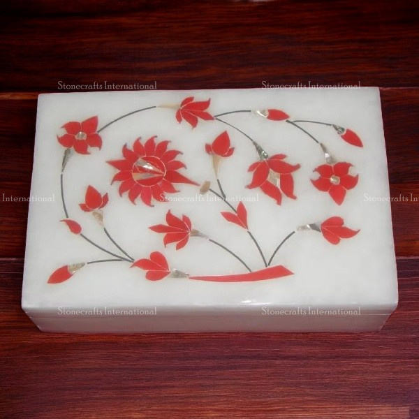 Custom White Mother of Pearl Inlaid Marble Jewelry Box with Custom Packaging for Export Sale