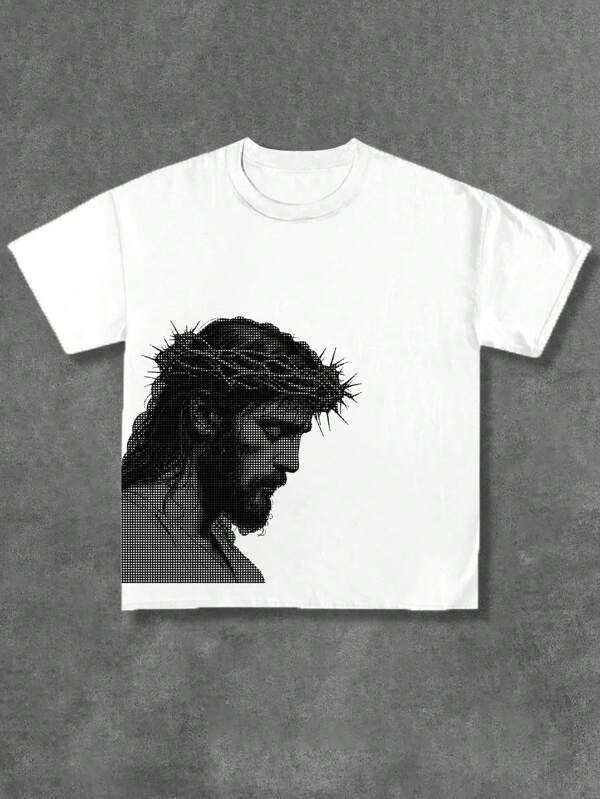 Custom White Oversized Long Jesus Christ Cross T-Shirt Silk Screen Printed 100% Cotton Worsted Streetwear Christian Men's 200gsm