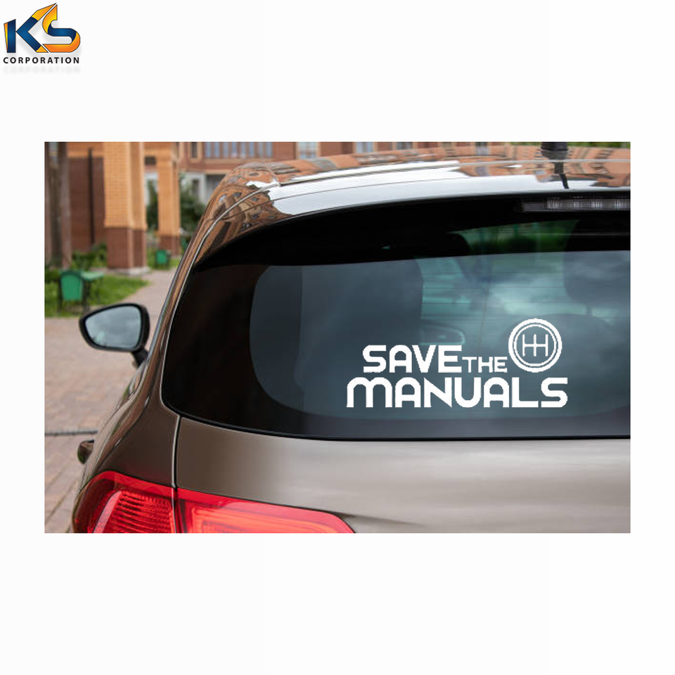 Custom White Save the Manuals Vinyl Car Window Decals UV Printed Cutout Sticker Design