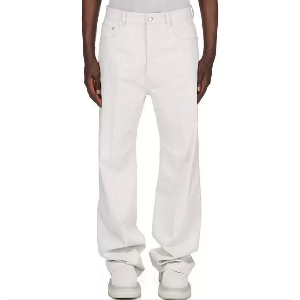 Custom White Slim Fit Denim Pants for Men Casual Cotton Distressed Washed Straight Fit Trousers Men's Jeans