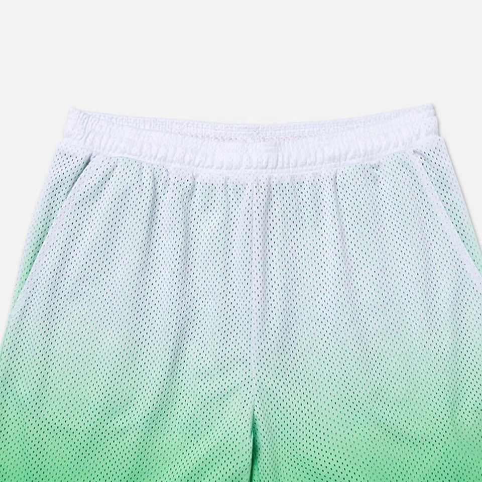 Custom White to Green Gradient Mesh Basketball Shorts Breathable Sublimated Training Activewear for Men Gym or Sports Use