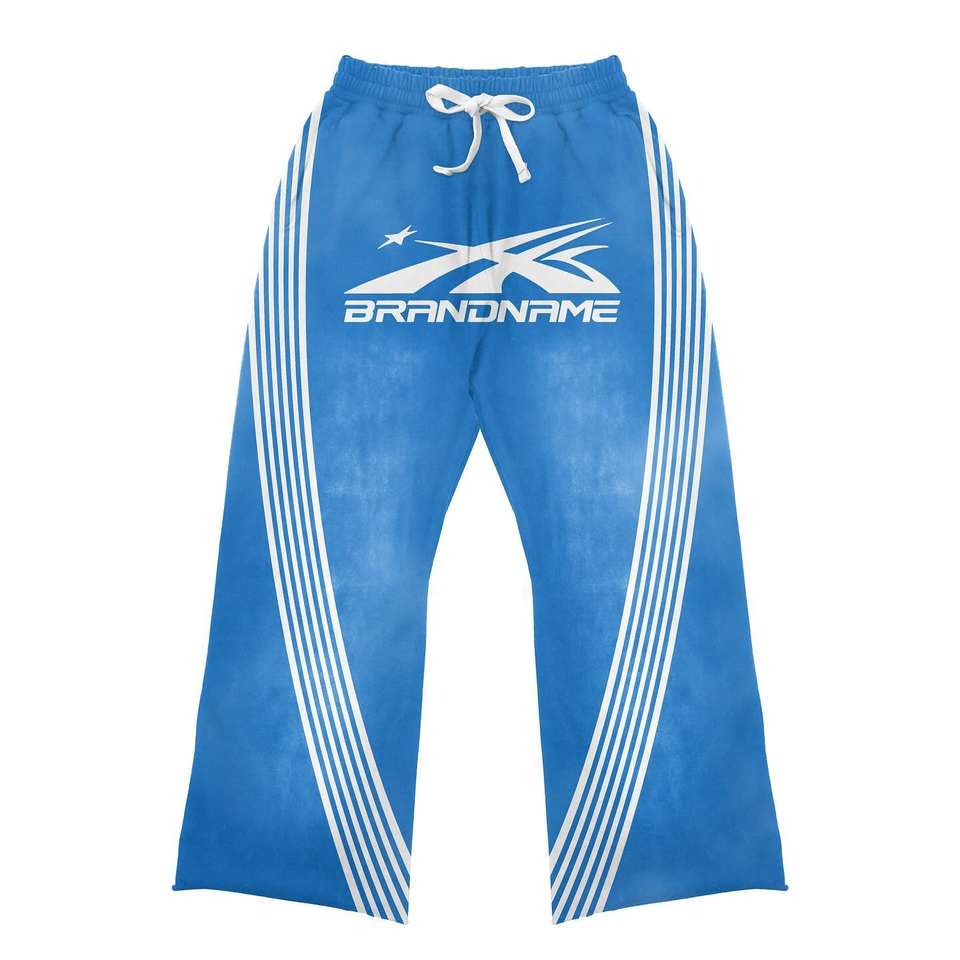 Custom Whole Sale Cheap Price Blue Color Screen Printing Logo Design Two Piece Sets T Shirts & Trouser Tracksuits For Men's