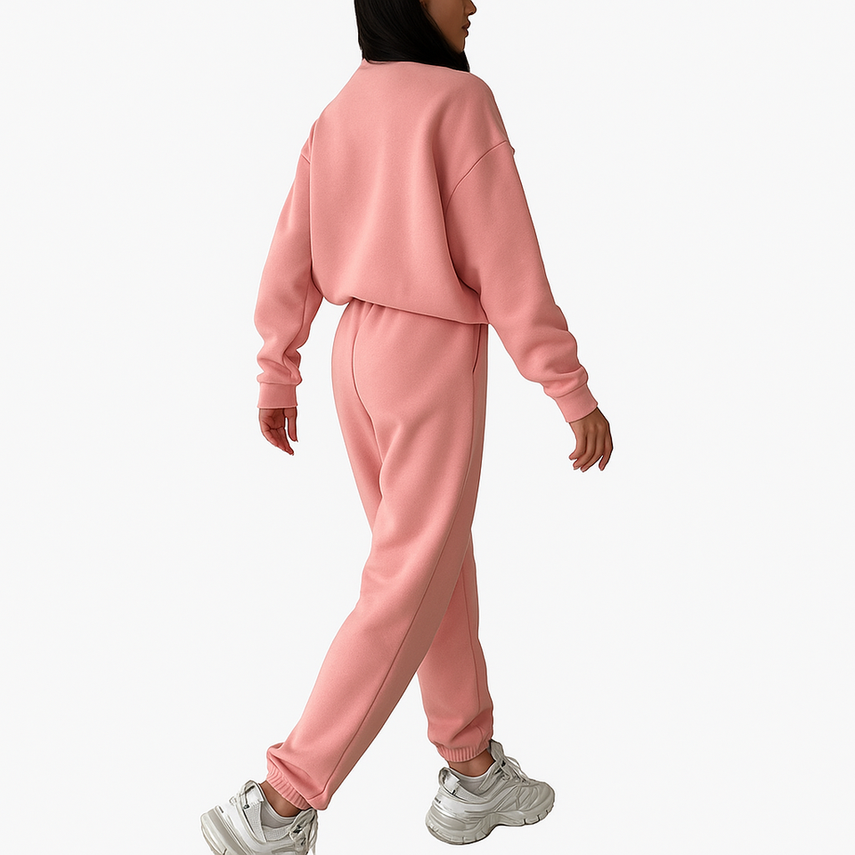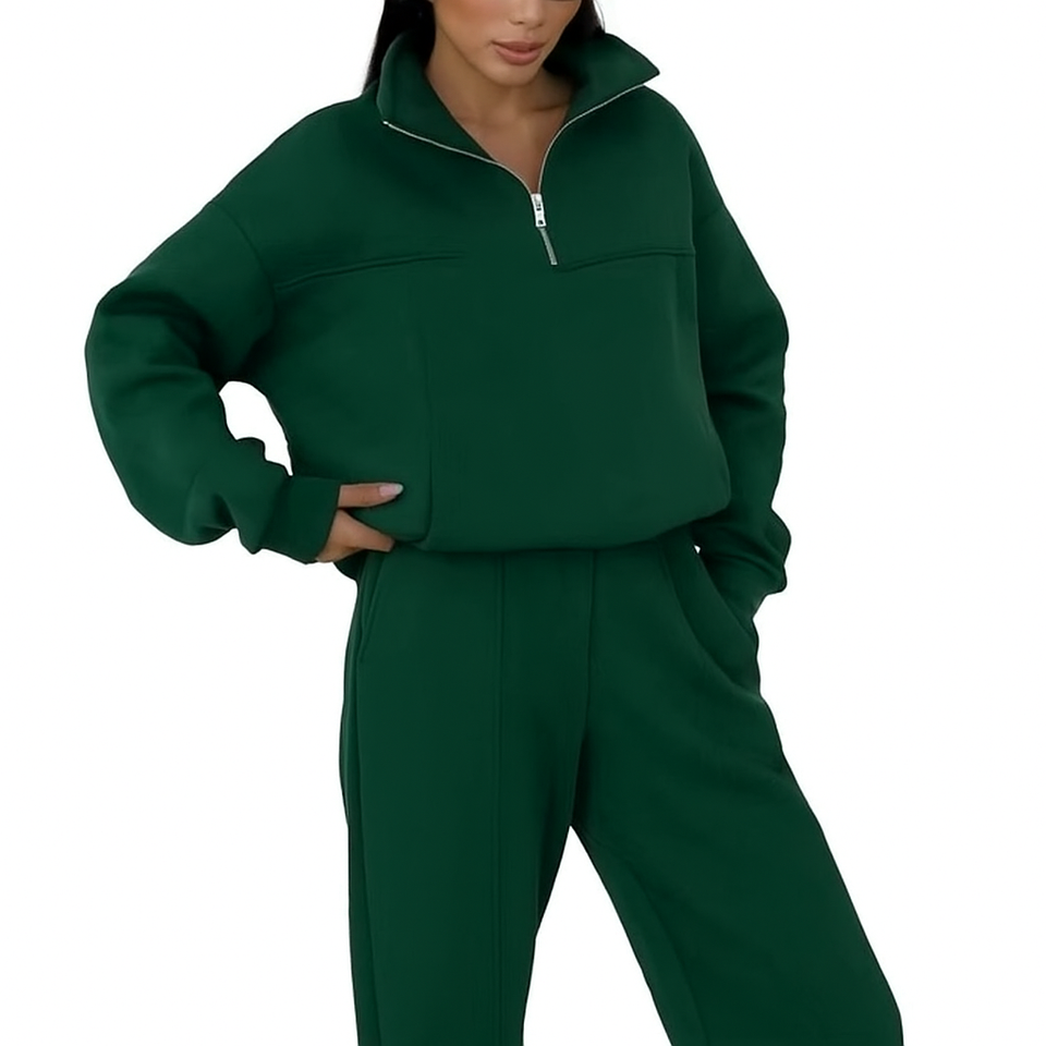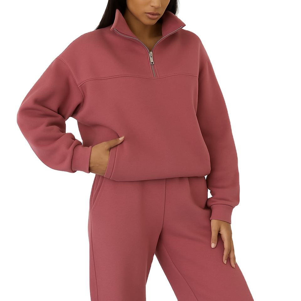 Custom Wholesale High weight Fashion Women Casual tracksuit Thick Fleece Lounge wear Set Zip Neck Hoodie Sweatpants