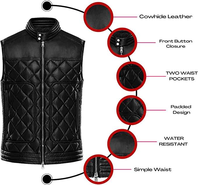 Custom Wholesale Breathable Genuine Leather Winter Motorbike Vest for Men Outer Wear in Good Quality