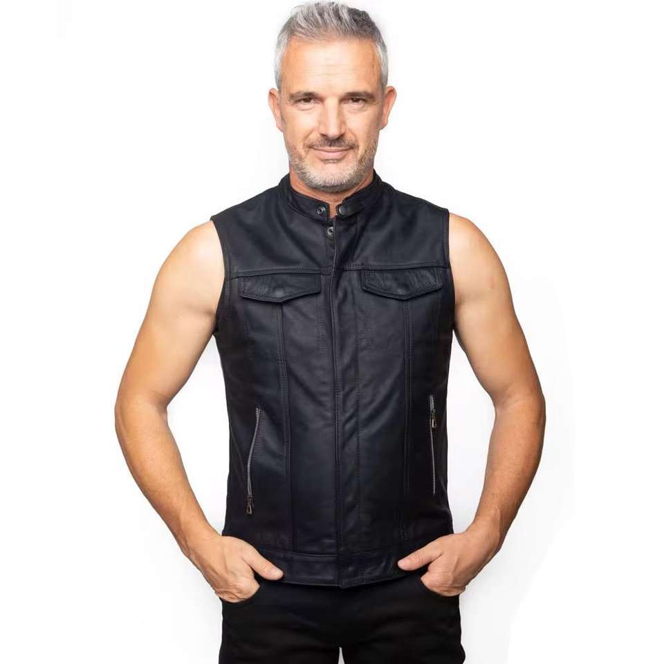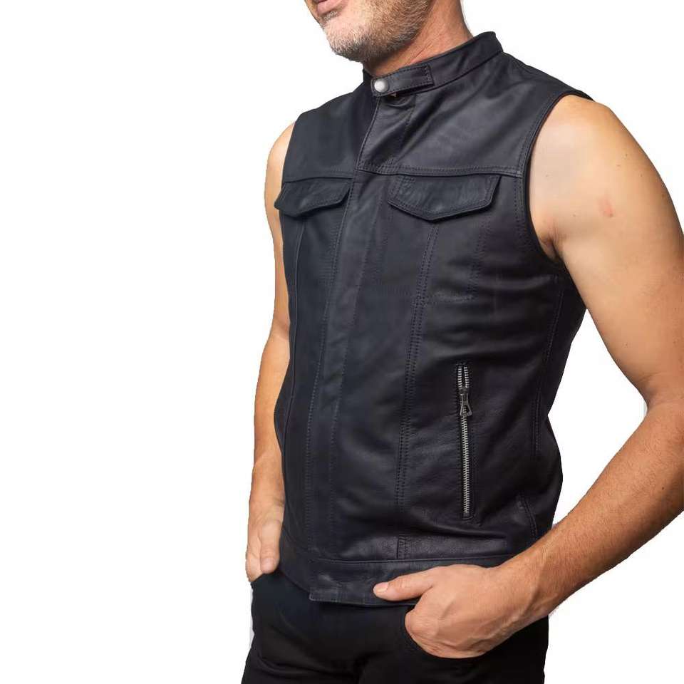 Custom Wholesale Breathable Motorbike Vest Men Utility Motorbike Leather Vest in Good Quality