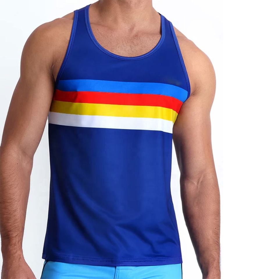 Custom Wholesale Colorful Tank Top For Mens Rainbow Print Sleeveless Shirt Soft Stretchable Fabric Eye Catching Print Tank Top