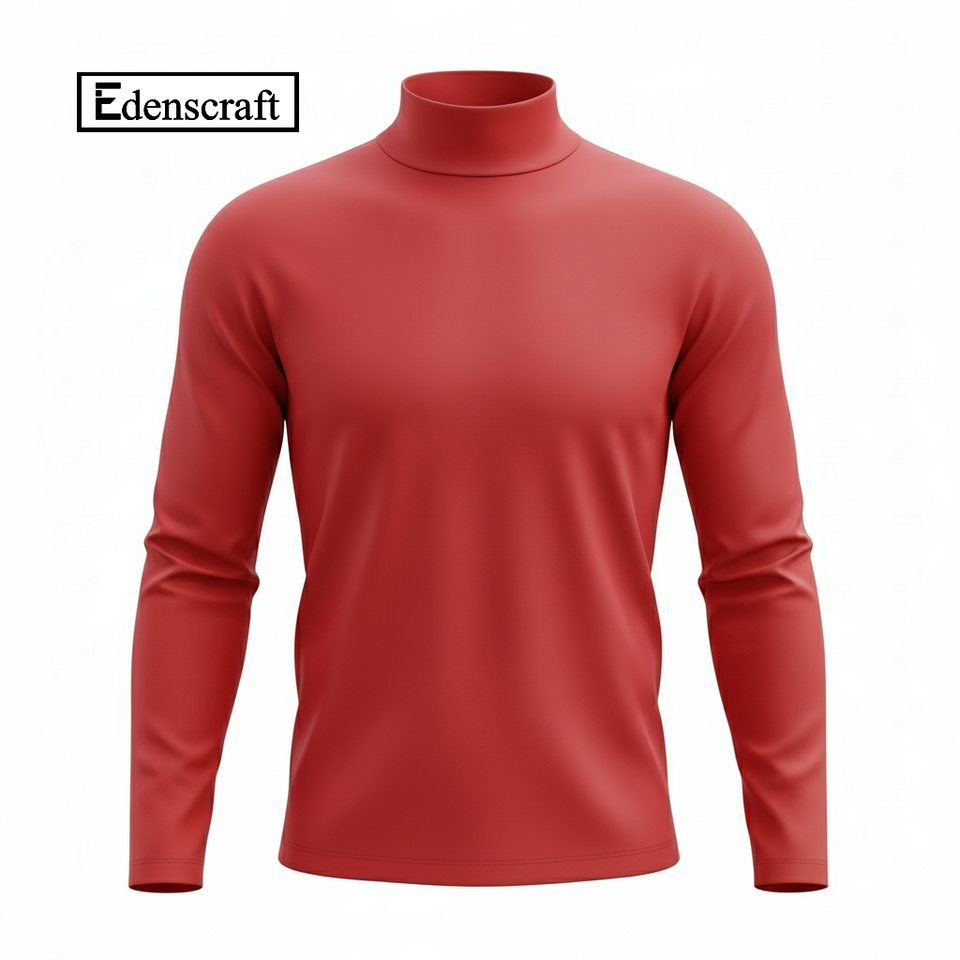 Custom Wholesale Cyan Solid Color Long Sleeve Men Turtle Neck Regular Fit 100% Cotton Eco-Friendly T-Shirt Bangladesh OEM