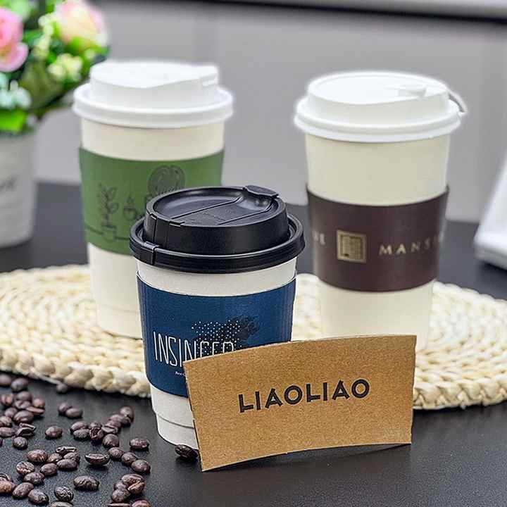 Custom Wholesale Disposable Waterproof Milk Tea & Coffee Cup Sleeves with Custom Logo Thickened Kraft Paper Insulated Corrugated