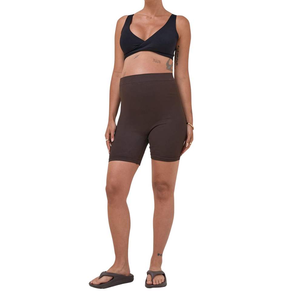 Custom Wholesale High Waist Maternity Yoga Shorts with Elastic Waist Closure Comfortable Pregnancy Shorts for Women with Pocket