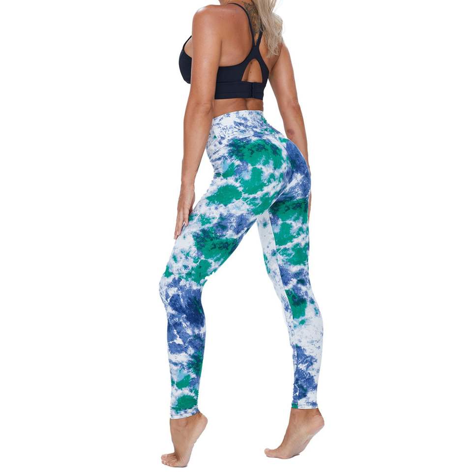 Custom Wholesale Hot Selling Womens Tie Dye Leggings Printed Seamed Cross Waist Yoga & Gym Pants
