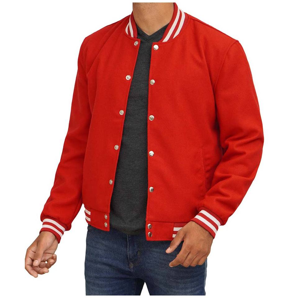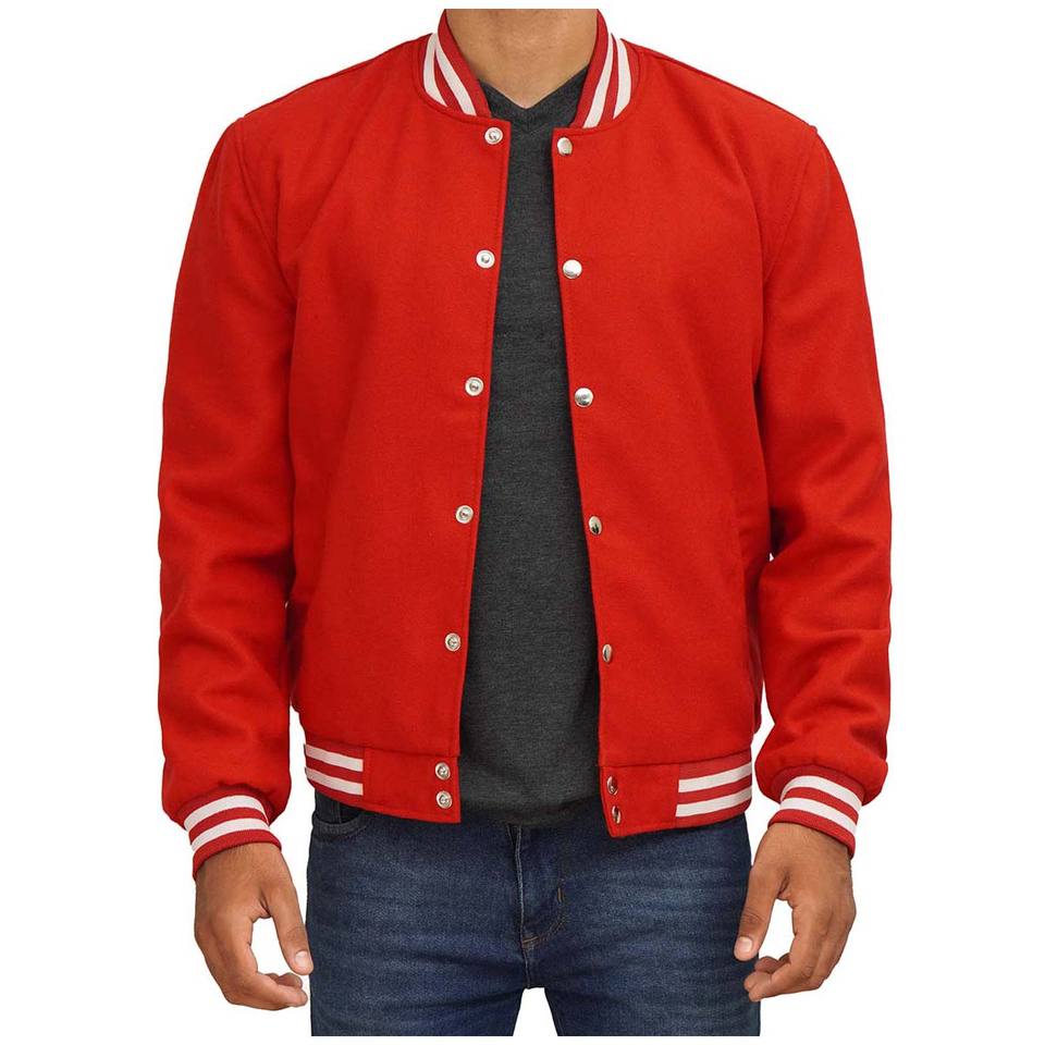 Custom Wholesale Leather Sleeves Chenille Embroidery Baseball Jacket Wool Red Letterman Jackets for Men
