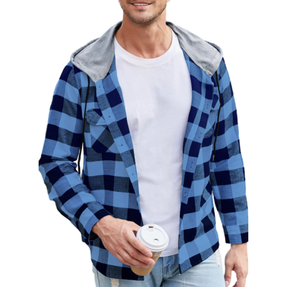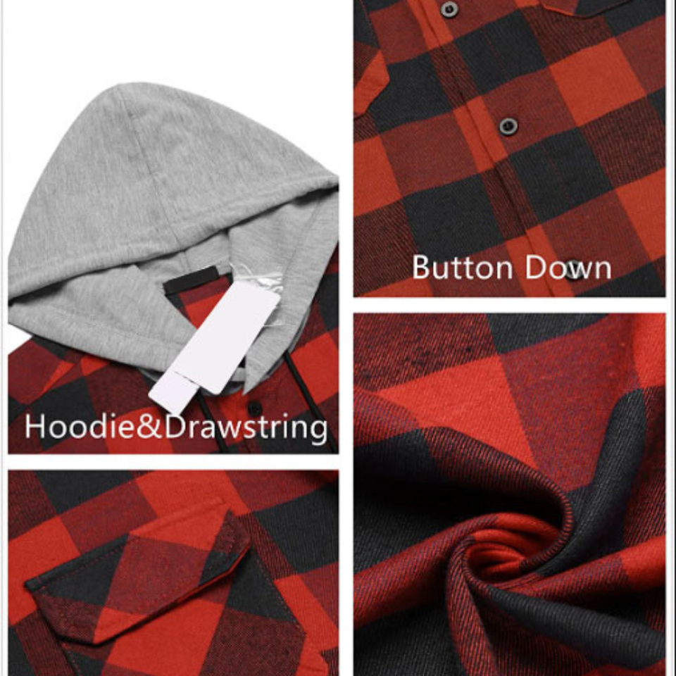 Custom Wholesale Men's Plaid Hoodie Flannel Shirt Jacket Long Sleeve Casual Fashion Button Shirts Plus logo Customization