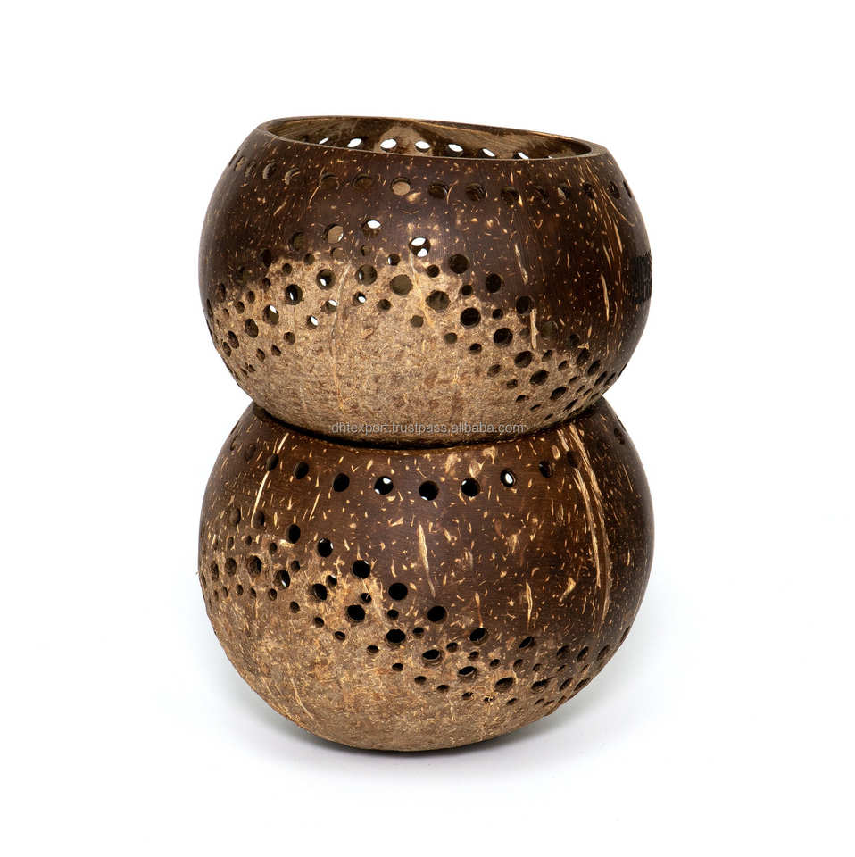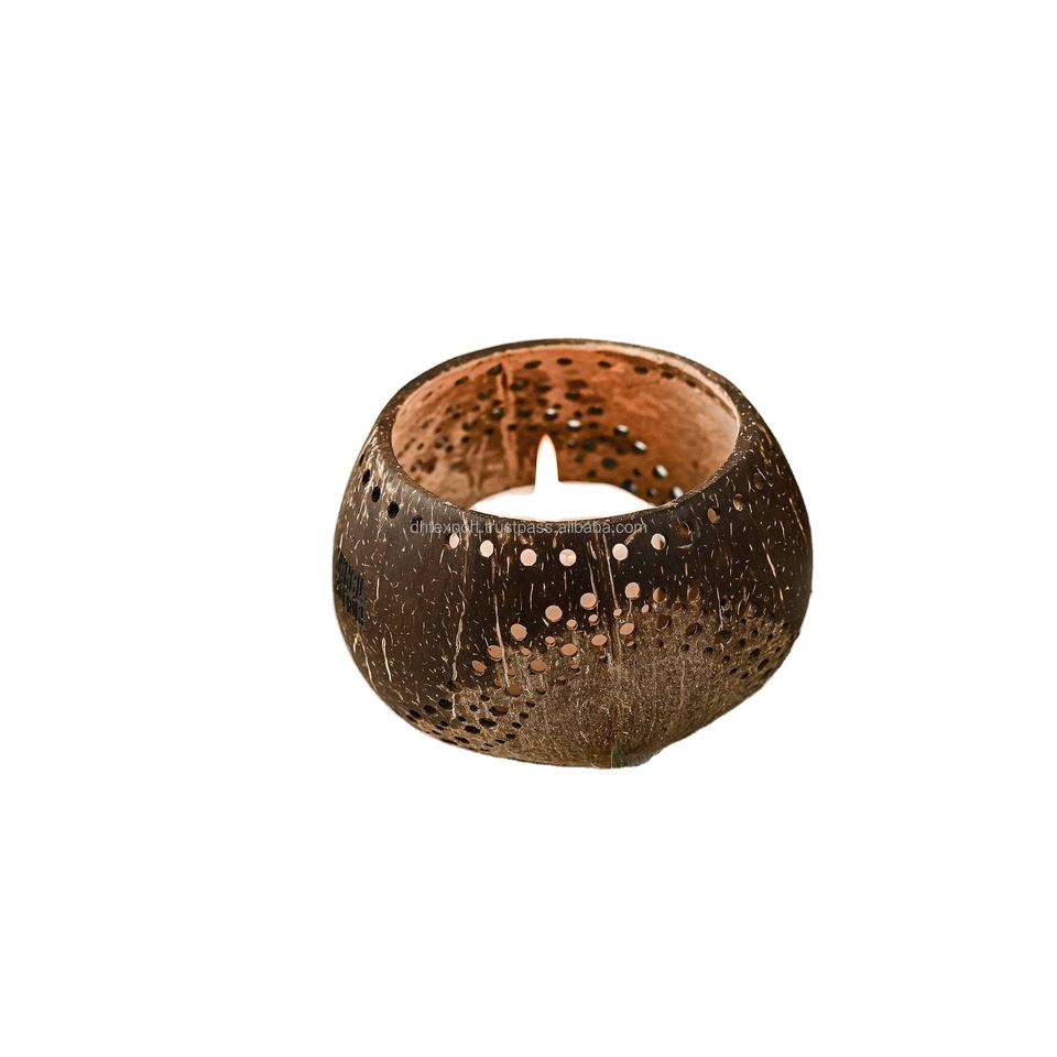 Wholesale Custom Natural Coconut Shell Candle Holder Handmade Modern Bowl Design Home Christmas Decoration Tealight Holding