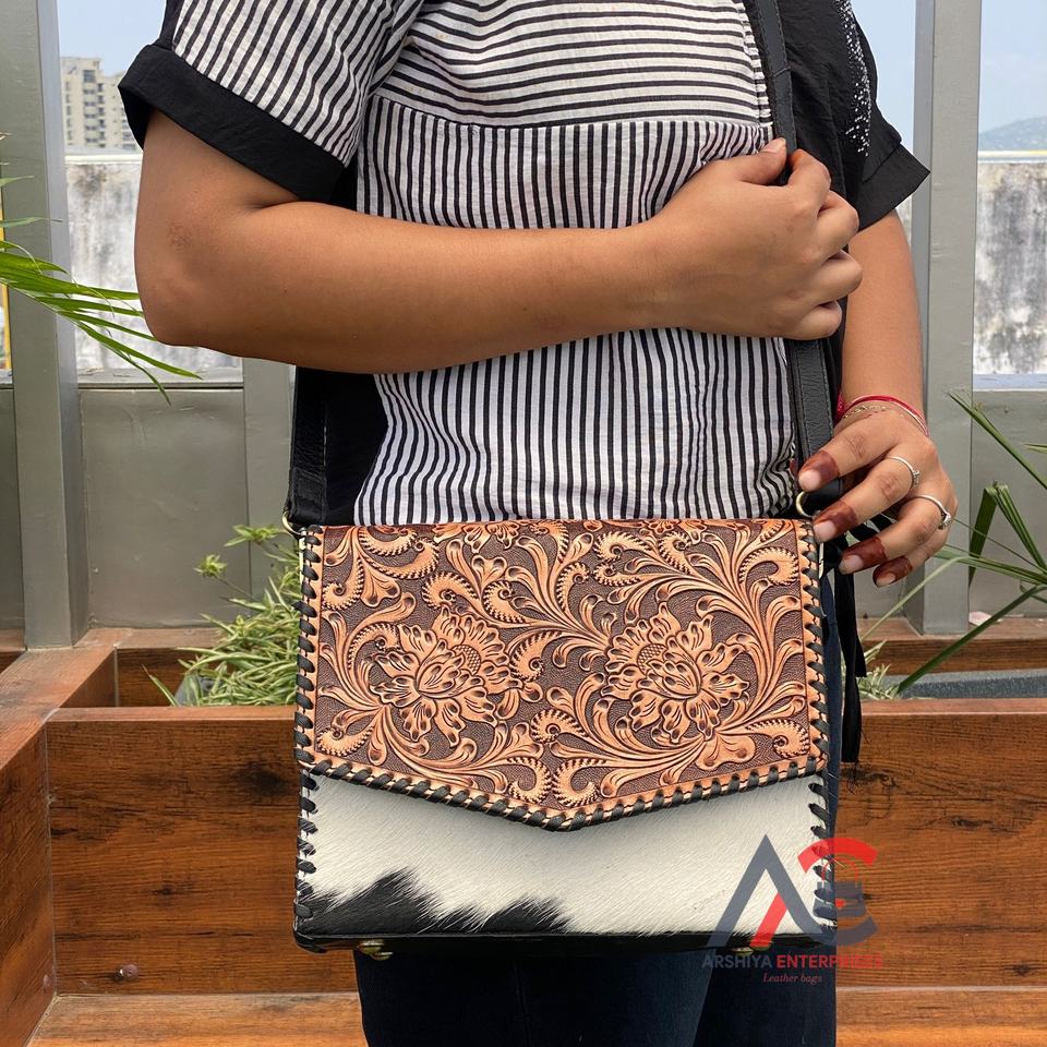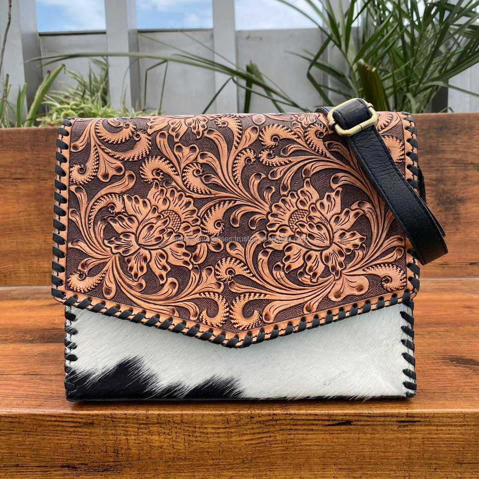 Product name:Hand Tooled Cowhide Leather Women's Crossbody Messenger Bag