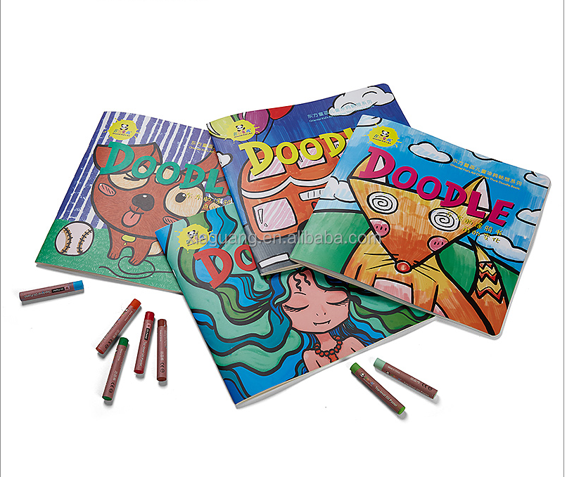 Custom Wholesale Printing Drawing Cartoon Kids Children's Coloring Book for Children Kids with Crayons