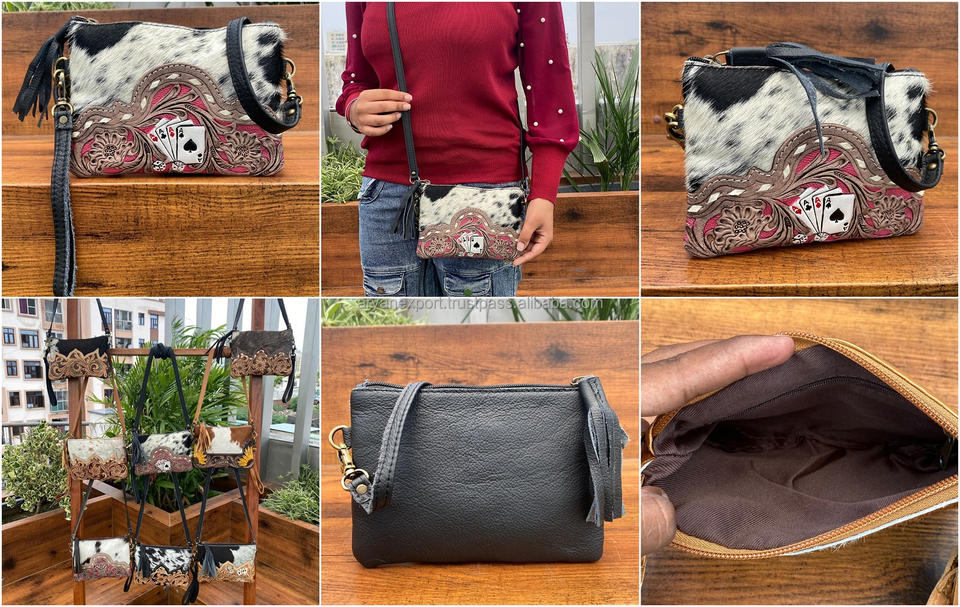 Product name:Hand Tooled Leather Wristlet Crossbody Tassel Pouch