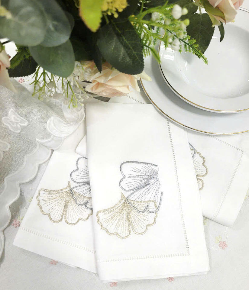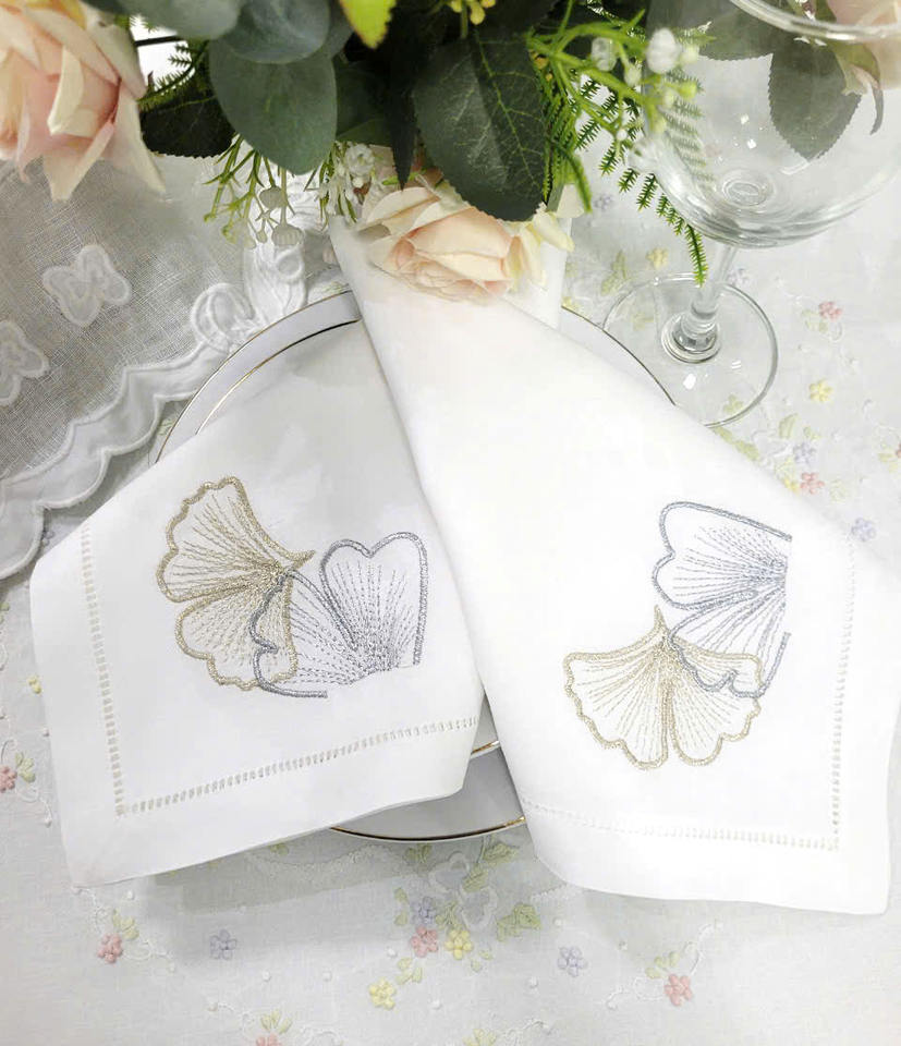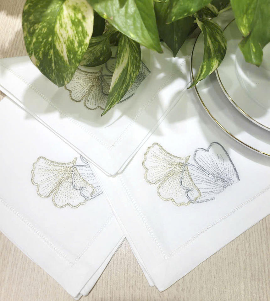 Custom Wholesale White Cotton Hemstitch Dinner Napkin Embroidered Gold&Silver Flower Table Napkins Home Hotel Events