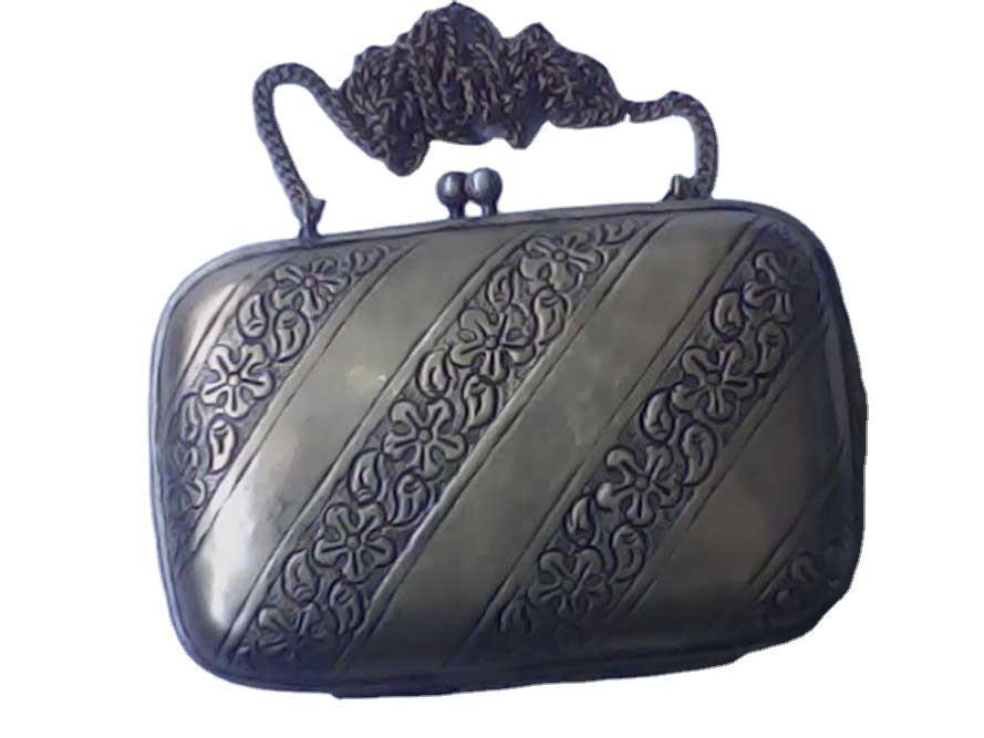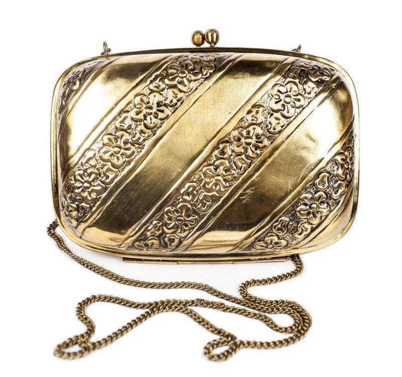 Custom Wholesale Women Designer Brass Embossed Metal Purse Evening Clutch Bag Gold Chain Light Suede Line Vintage Clutch Purse