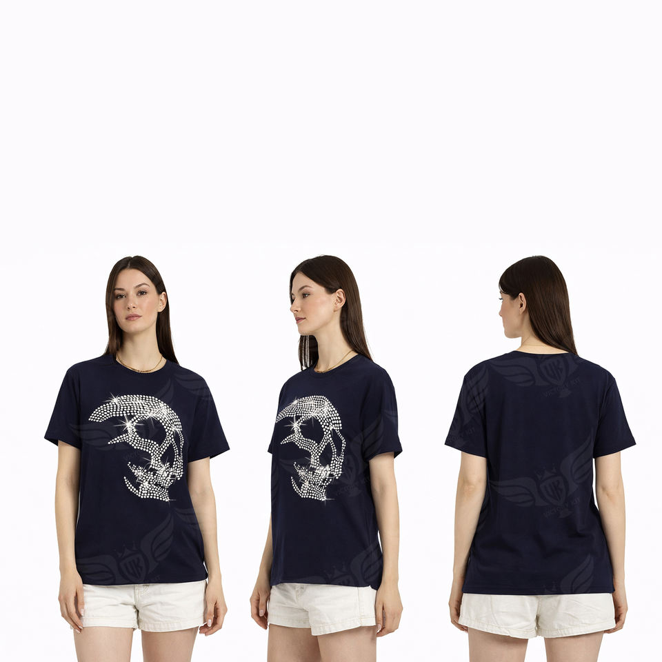 Custom Wholesale Women Rhinestone Skull Graphic T Shirt Short Sleeve O Neck Fashion Tee