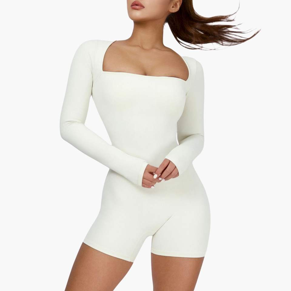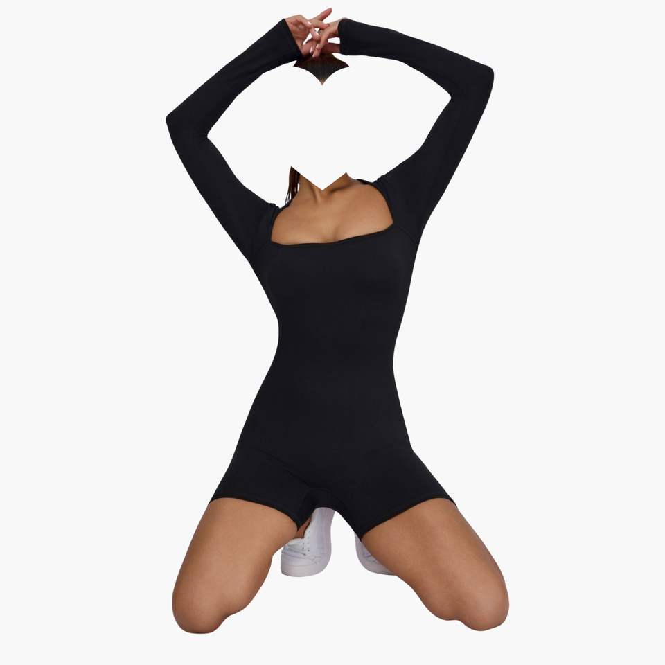 Custom Wholesale Women Solid One Piece Yoga Suit Long Sleeves Slim Fit Sleeveless Workout Bodysuit with Shorts
