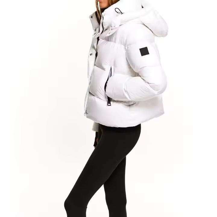 Custom Wholesale Women Winter Hooded Puffer Jacket Knitted Canvas Lightweight Warm Quilted Breathable Eco-Friendly Premium