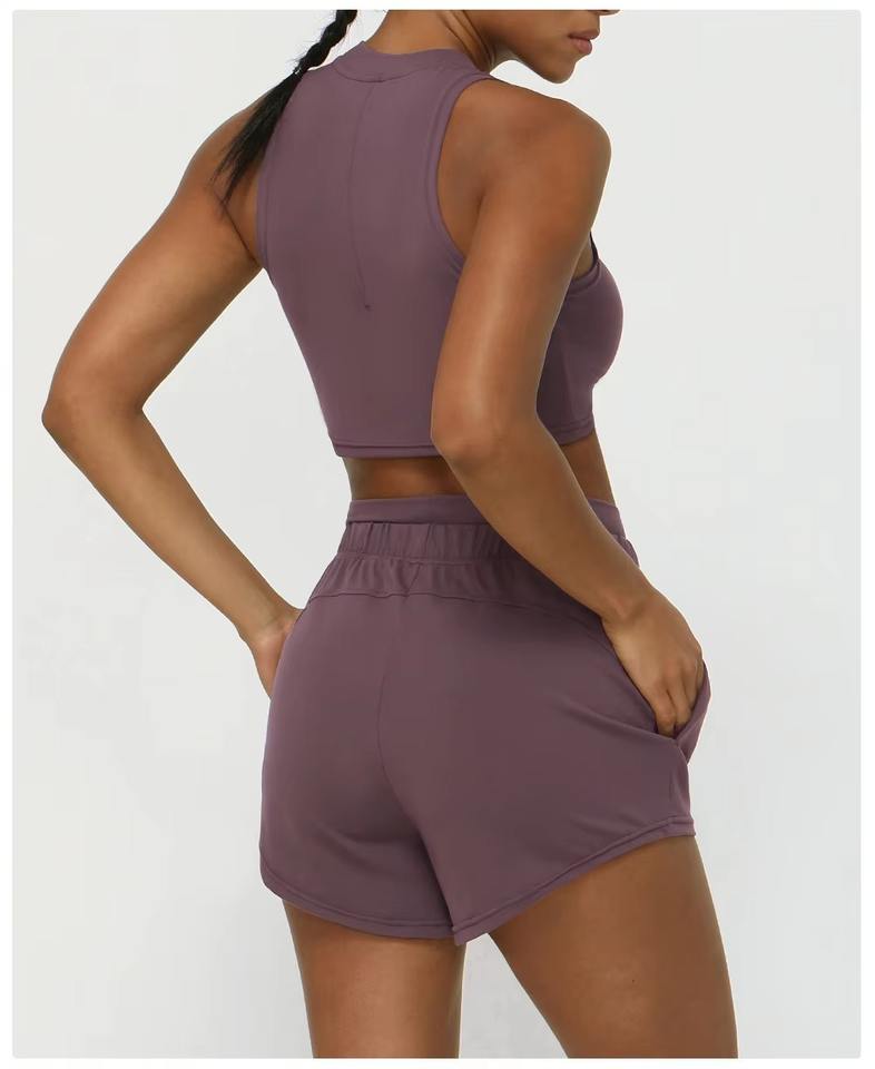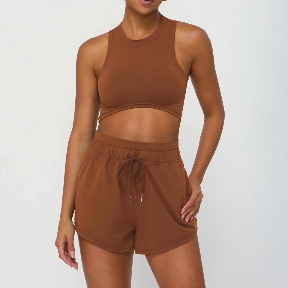 Custom Wholesale Women's Yoga Bra Shorts Set-Tight Fitting Racerback Sports Bra Mid Waist Breathable Quick Dry Fabric for
