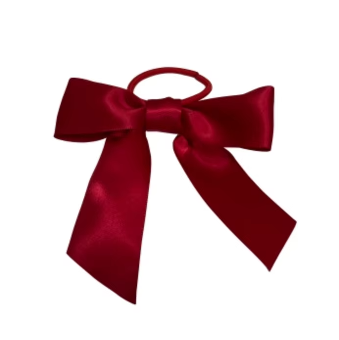 Custom Pre-tied Wine Bottle Neck Decoration Solid Red Satin Bow Elastic Loop ID Card Holder UV Printing Durable for Gift