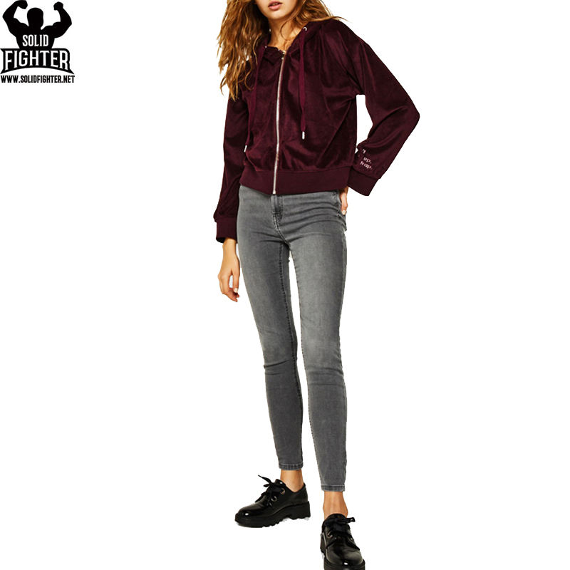 Custom Wine Red Velvet Zip up Hoodie for Women Men Hoodies Wholesale
