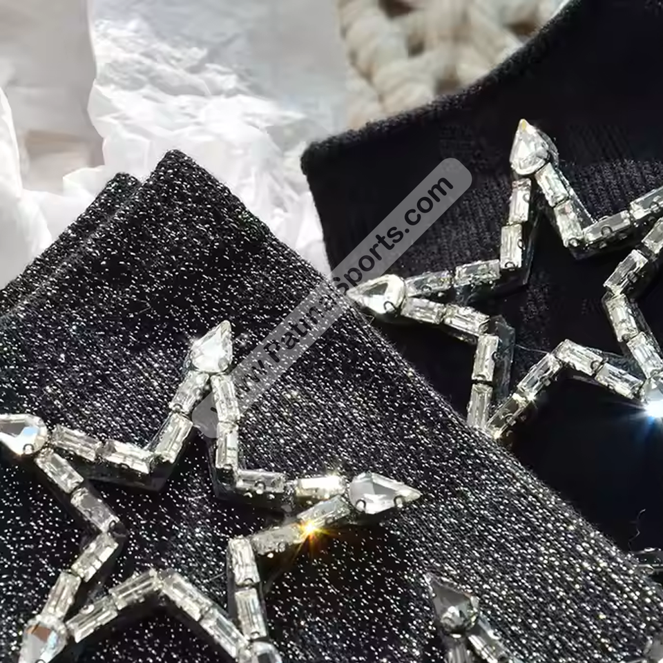 Custom Winter Crew Rhinestone Socks High Quality Cotton Sparkling Glitter Diamond Design for Women Daily Use