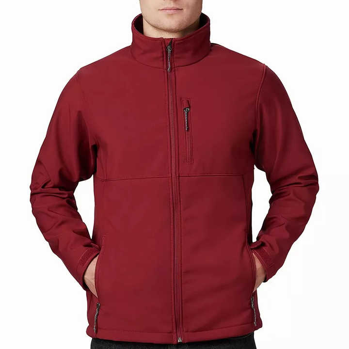 Custom Winter Men's Softshell Jacket Stand Collar Fleece Lining Waterproof Breathable Fabric Front for Outdoor Hiking Daily Use