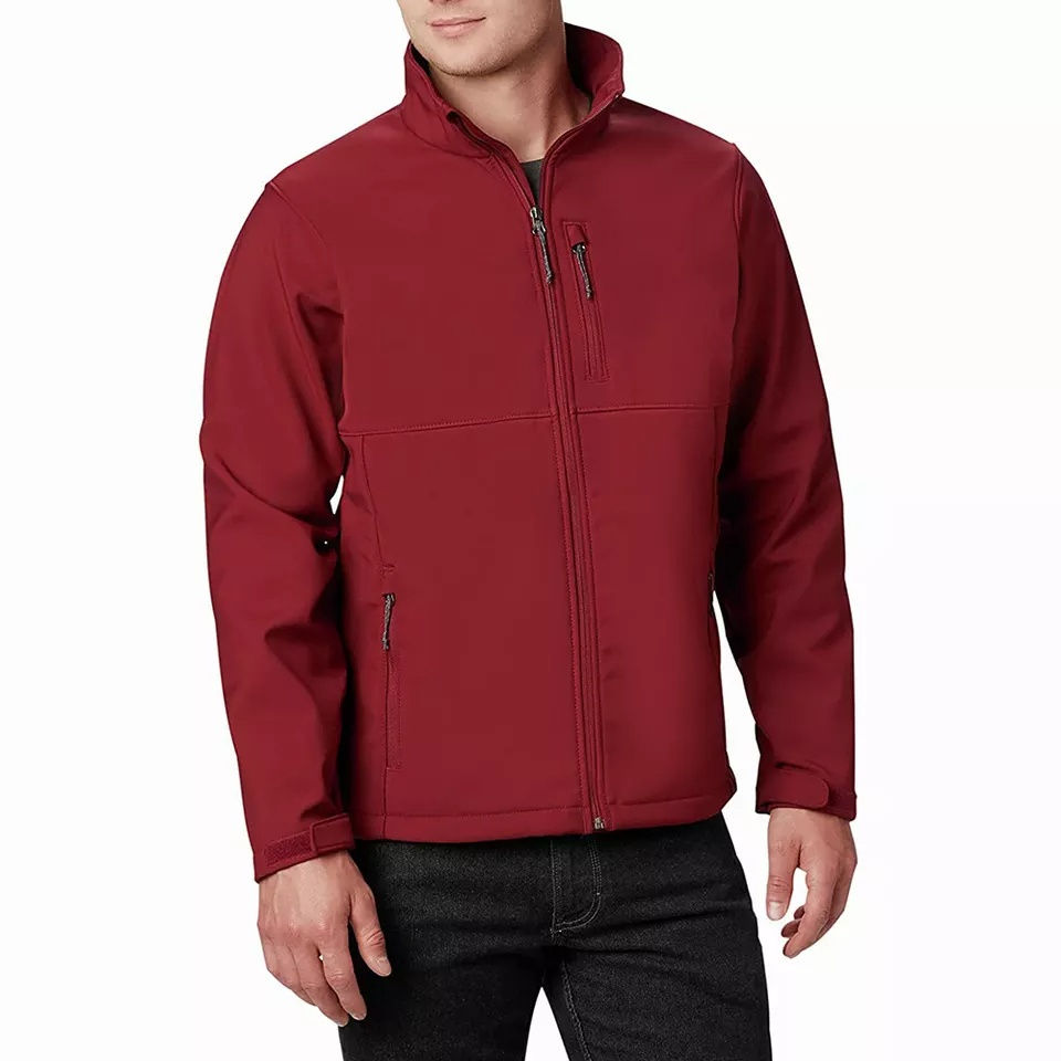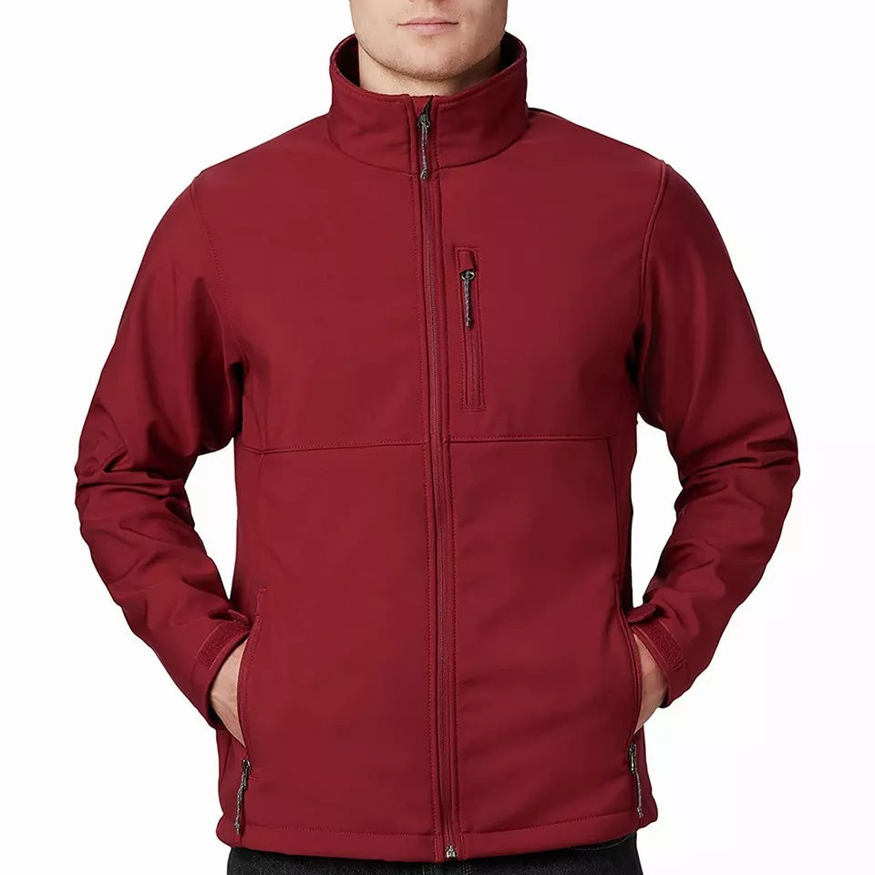 Custom Winter Men's Softshell Jacket Stand Collar Fleece Lining Waterproof Breathable Fabric Front for Outdoor Hiking Daily Use