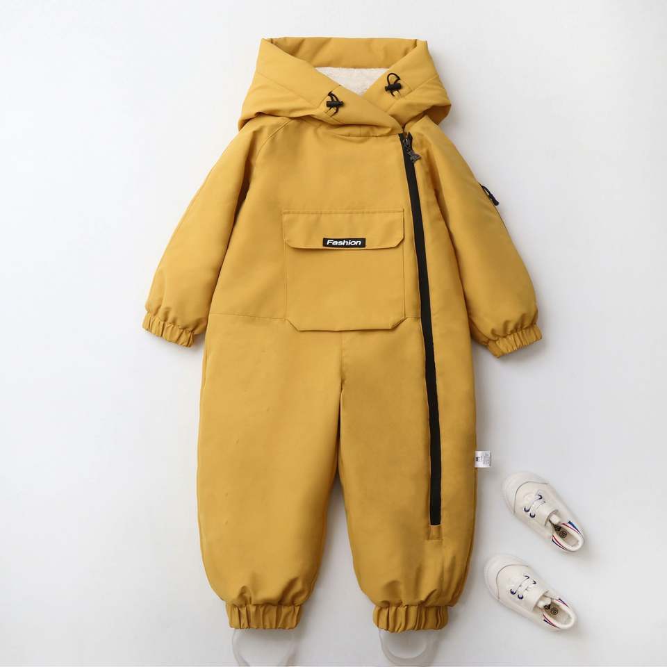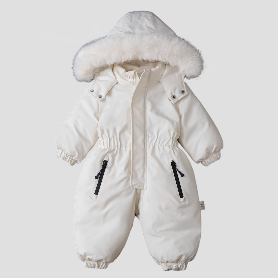 Custom Winter Unisex Solid Deep Pile Fleece Pramsuit Hooded Warm Zipper Footie Snowsuit Onesie Infant Outfits Baby Romper