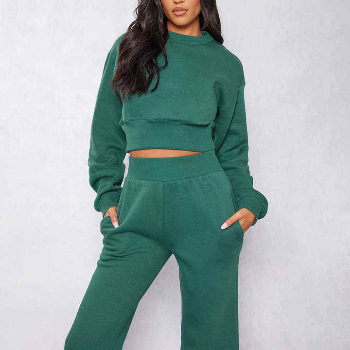 Custom Winter Woven Heavyweight Two-Piece Pullover Short Solid Sweatsuit & Baggy Oversized Tracksuit Women