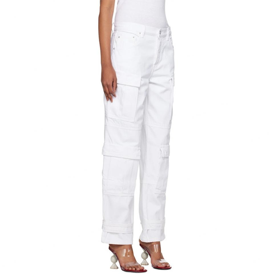 Custom Women 100% Cotton White Cargo Jeans Trousers With Bellows Pockets Straight Leg Jean Pants