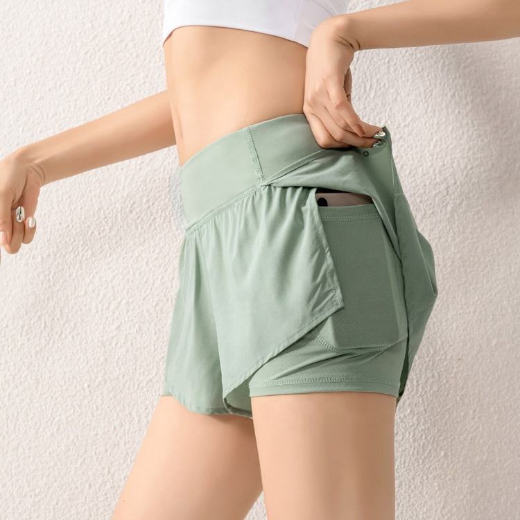 Custom Women 2 in 1 Yoga Shorts Workout Shorts Gym Fitness Running Tennis Shorts with Phone Pocket