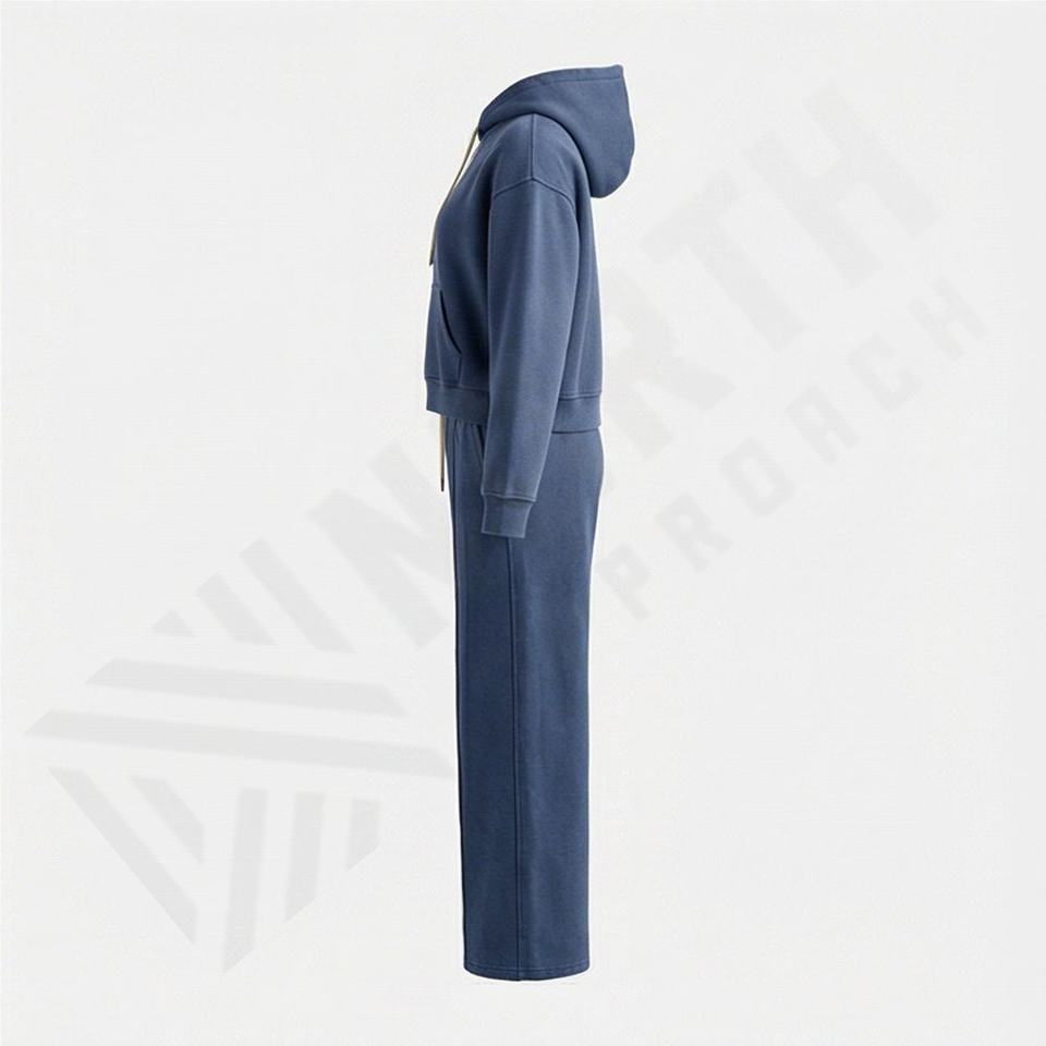 Custom Women Acid Wash Vintage Sweatsuit Streetwear Flared Style Zip Solid Pattern Cotton Premium Gym Fitness Athletic Outfit