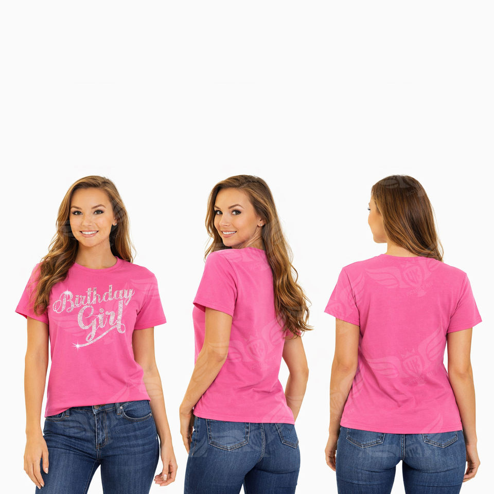Custom Women Birthday Girl Work Latter Rhinestone Custom color T Shirt Short Sleeve O Neck Party Fashion Tee