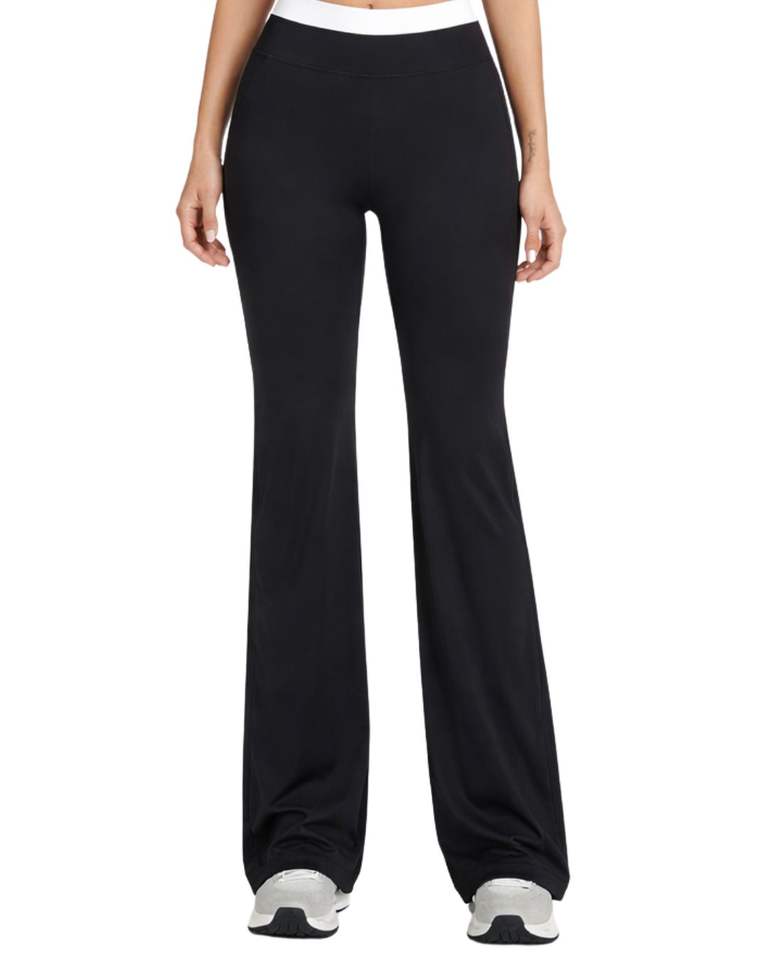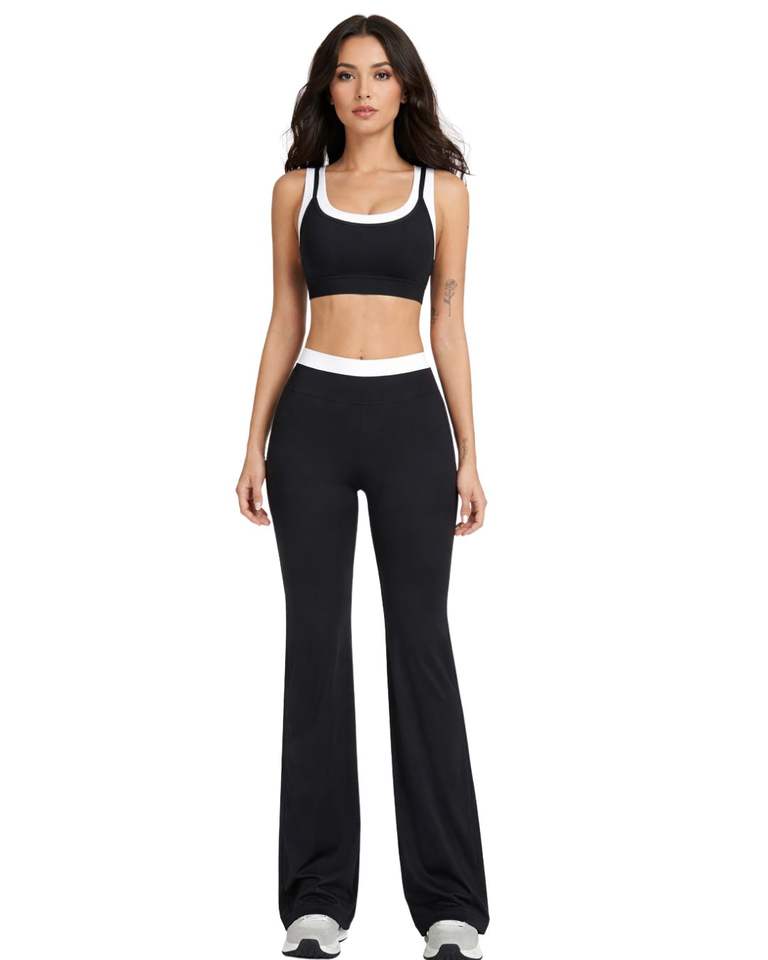Custom Women Black White Contrast Sports Bra And Flare Pants Set High Waist Stretch Yoga Fitness Gym Wear Custom OEM Wholesale